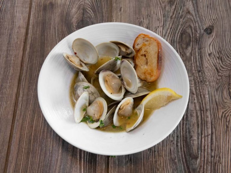 Littleneck Clams with white wine garlic sauce and fresh herbs